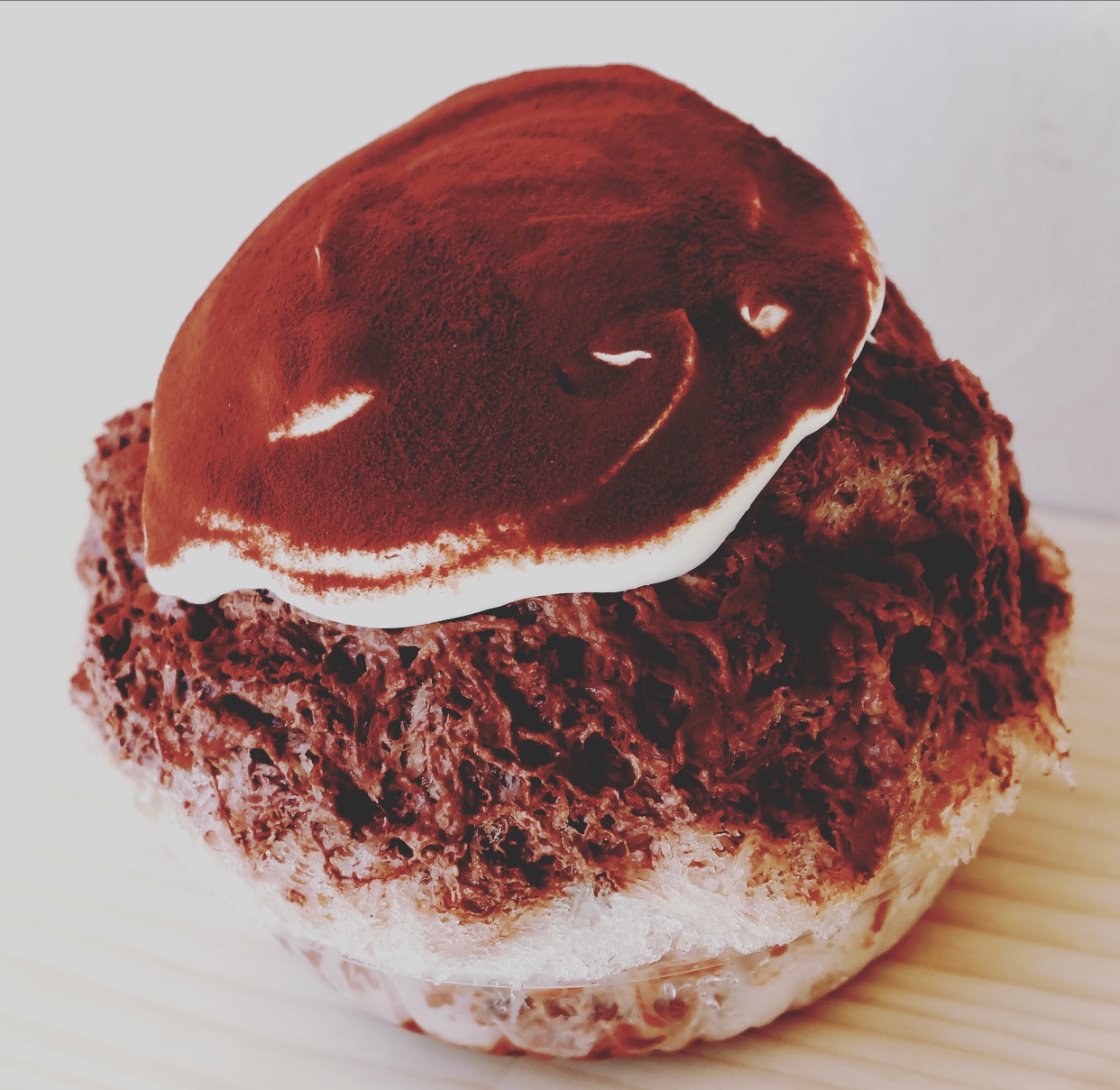 ( 超・濃厚なホットチョコに白玉、あずき、生クリーム、カカオニブを入れたうまいやつ)